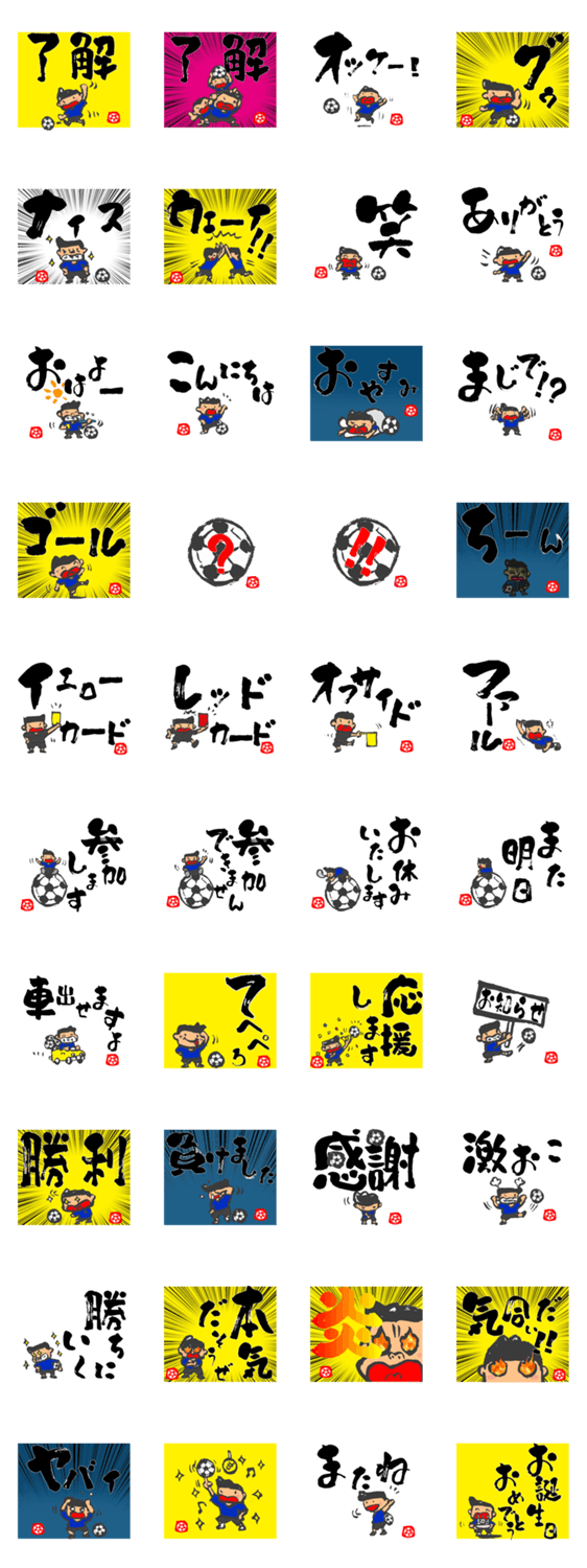 | スタンプ説明 | サッカー/フットサルの好きの方へ。 チビキャラクターで使いやすいデカ文字スタンプを作りました。プレゼントにもどうぞ!! |
