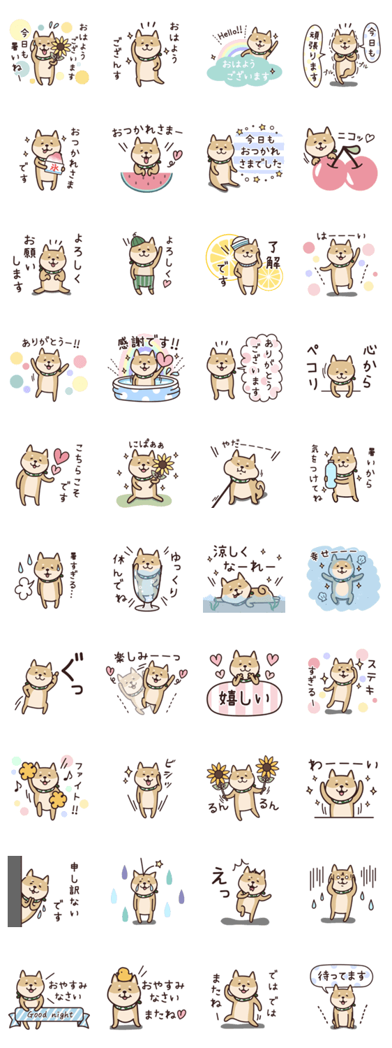 しば犬の明るくHappyなスタンプ♡夏に使えるスタンプも入っています