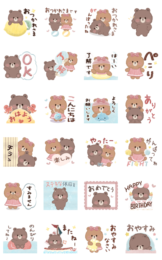 ブラウン&チョコ 仲良く過ごす夏のスタンプです。あいさつ・誕生日・海・らぶ・シンプル ※BROWN & FRIENDS をみんなでつくろう!キャンペーン参加スタンプです