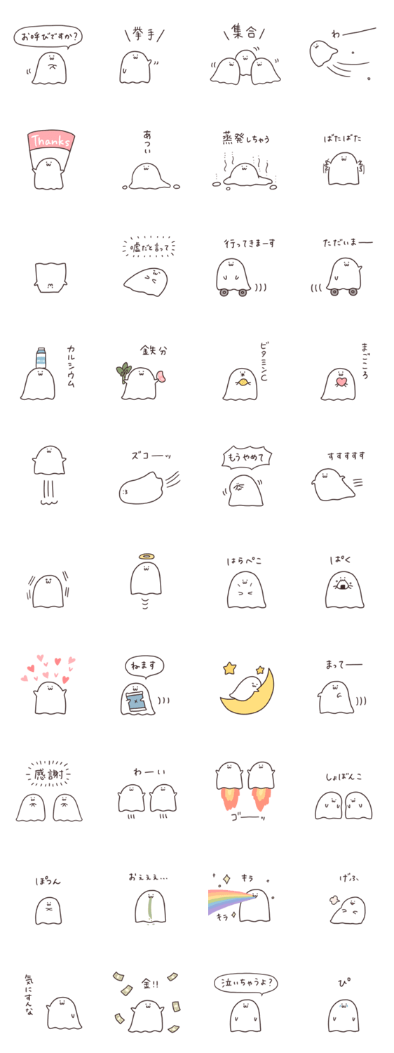 ゆるい、もひもひした白いおばけ第三弾。可愛い/シンプル/オバケ/日常