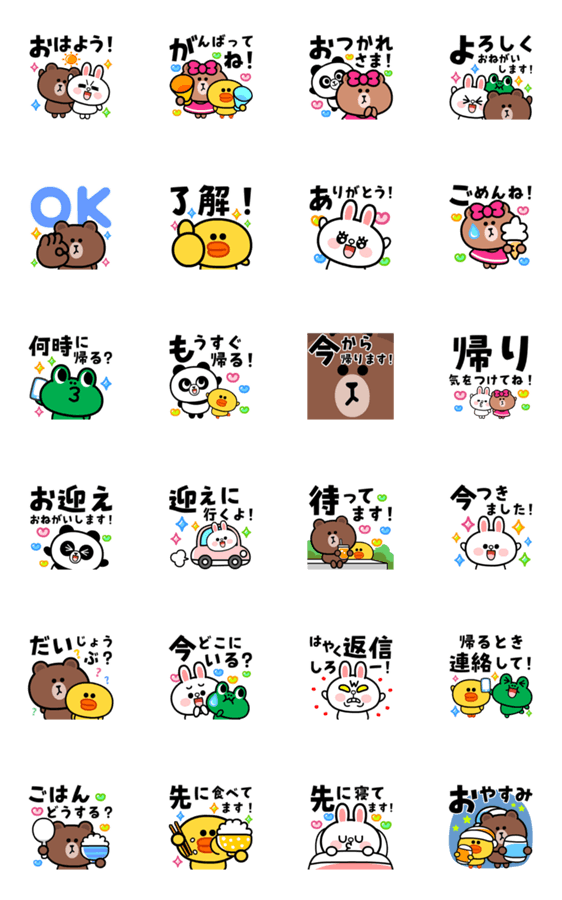 ブラウン&フレンズの家族の連絡用スタンプ動くアニメーションバージョン!でか文字で見やすい可愛いスタンプです♪家族・夫婦・親子で使える定番の挨拶&返事。。 ※BROWN & FRIENDS をみんなでつくろう!キャンペーン参加スタンプです