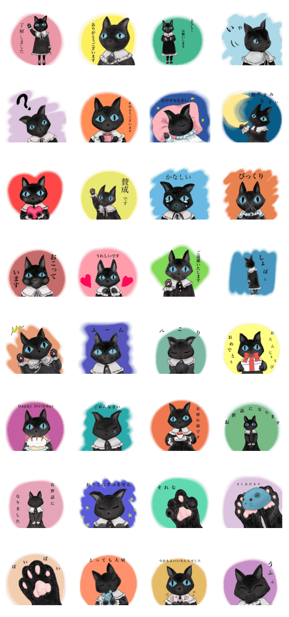 レトロ黒猫の毎日使えるスタンプです
