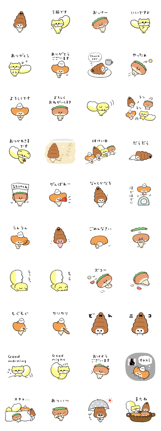 とあるパンの国に住んでいるパンの妖精たち。 りすパンの妖精、クリームパンの妖精、コッペパンの妖精、コロネの妖精、よろしくね。