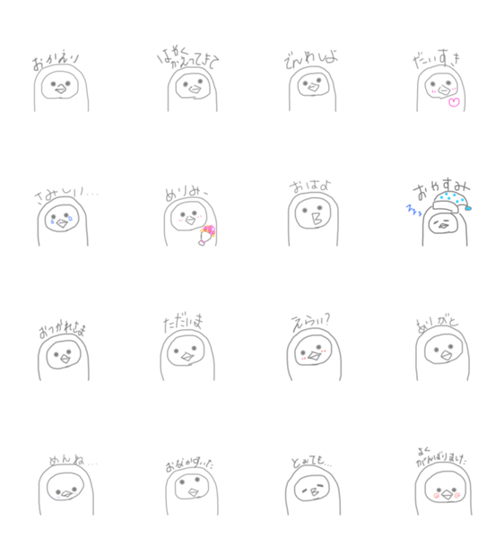 手描きスタンプ。「めんね」は「ごめんね」という意味です。「とぉても」は呆れたときなどに使うものです。