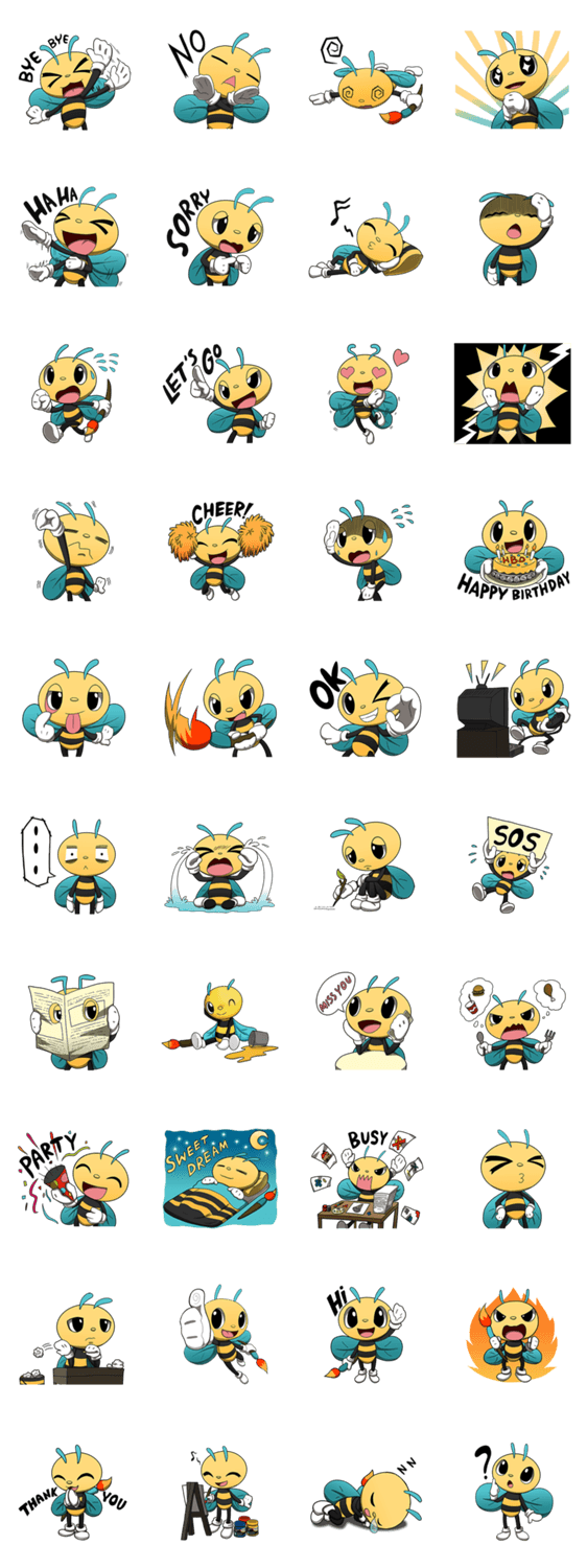 | スタンプ説明 | N'SeeSan. The bee is full of inspiration.Habit is cute, cheerful, playful and little jok. N'SeeSan used the free time to create art very cool!. |