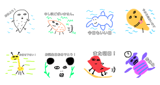 スタンプ説明 可愛い動物達のスタンプです。一生懸命描きました!