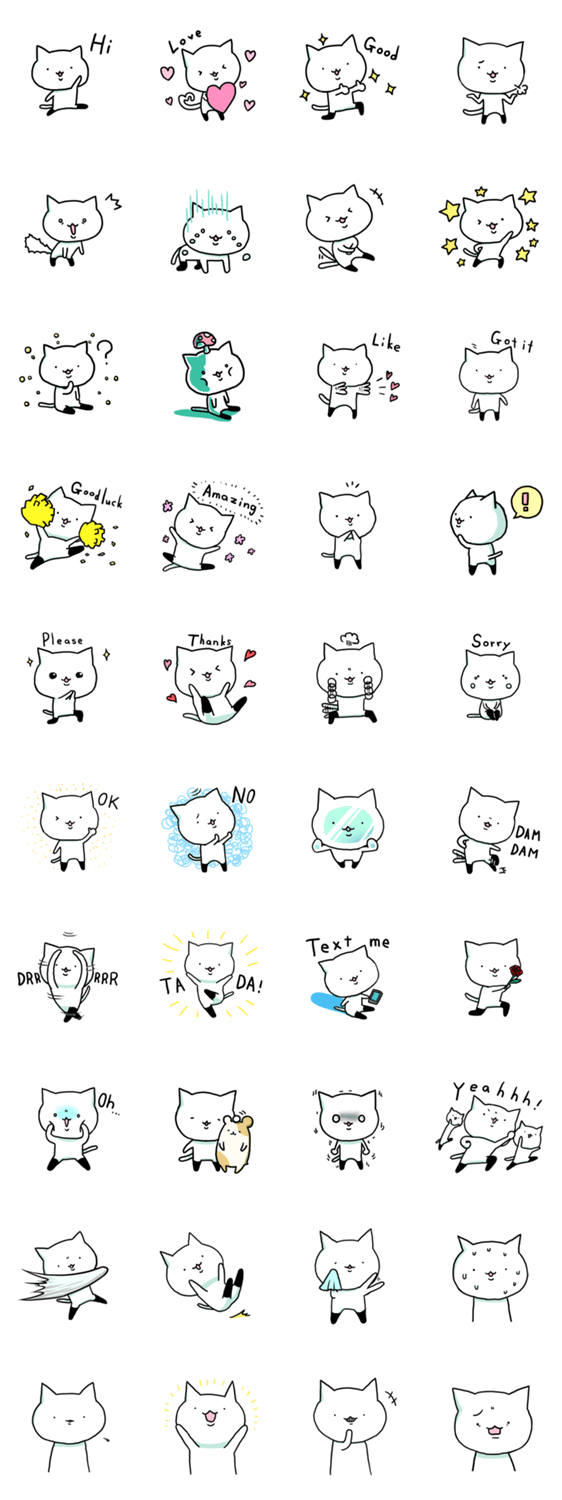 ニーソねこのスタンプが英語版でカラフルになって登場!留学生の友達に送るスタンプに最適です。