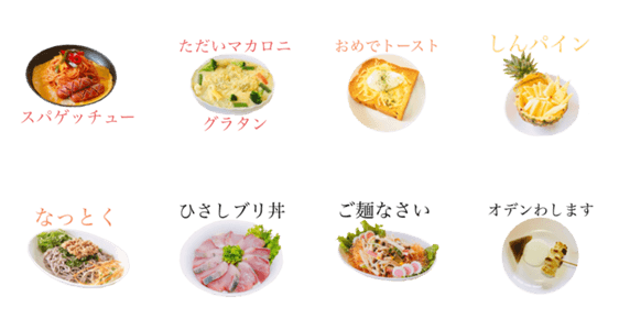 スタンプ説明 平岡真奈美の手料理写真&ダジャレスタンプで