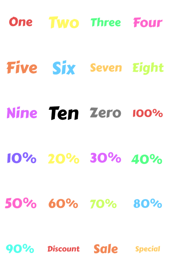 | スタンプ説明 | Number (alphabet) and percentages (%) |