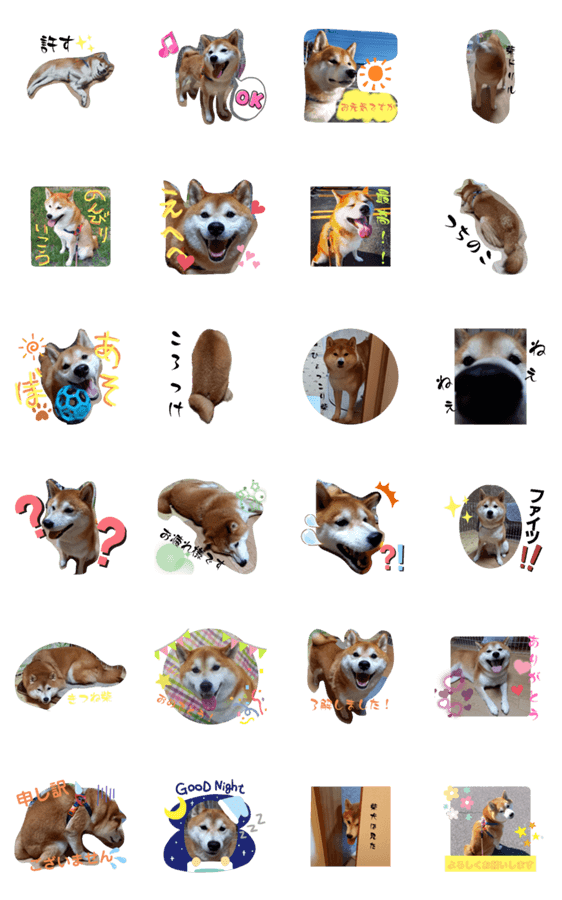 LINEスタンプメーカーでつくったでか柴こてつのスタンプです。