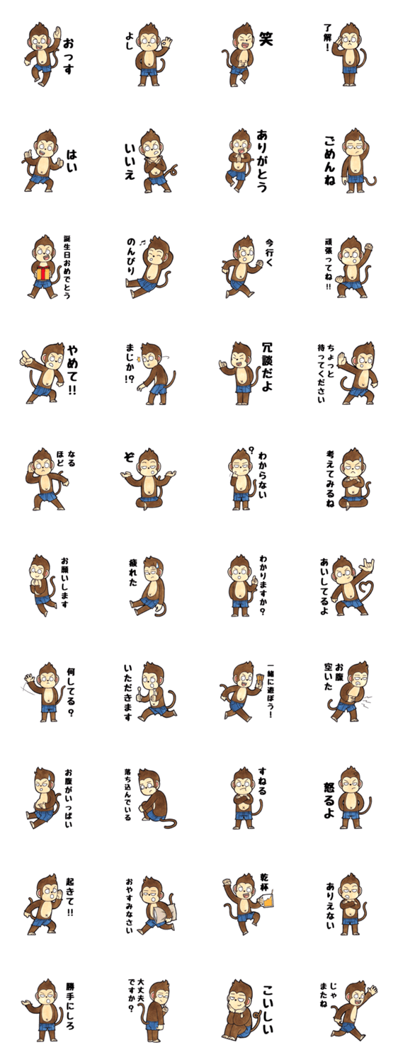 | スタンプ説明 | "Hi, My name is Toto. even though my nickname is Moody Monkey.But Trust me, I'll make your chat fun. !!" |