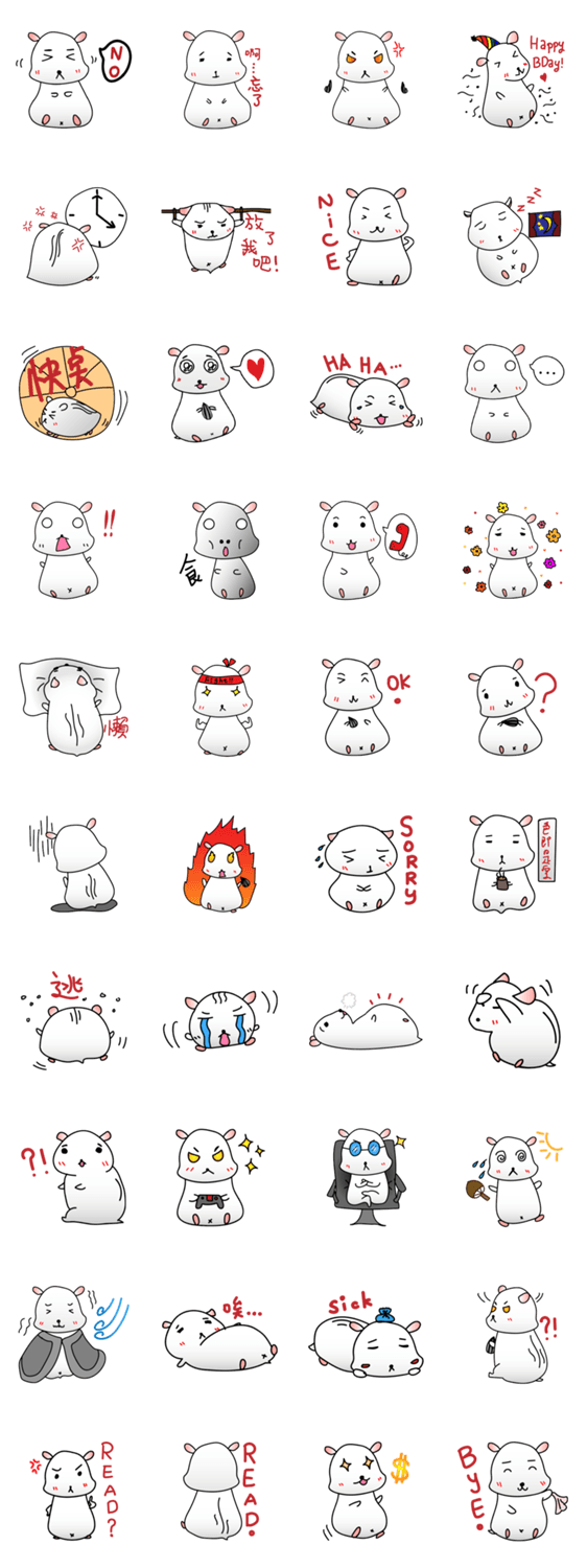 | スタンプ説明 | A little white hamster who wants to live happily. Her name is MIMI. If you like her, she will try her best to accompany you and make you happy! |