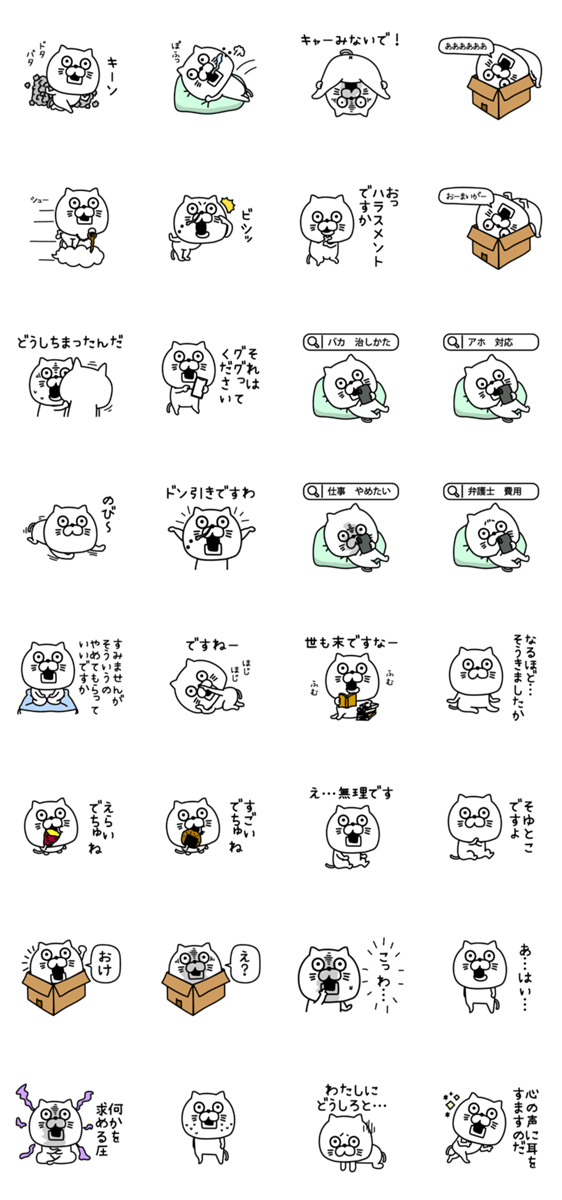 白ネコのあいうえお・・・ってるスタンプ