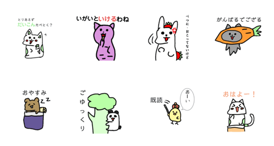 だいこんねこと仲間達 やさいあにまるzoo -LINEスタンプマニア