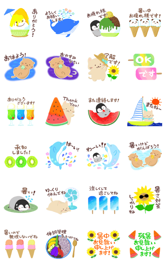 大人女子が使いやすい夏のスタンプ第2弾です。涼し気なモチーフがたくさん✨暑中お見舞い、残暑お見舞いにも使えます。