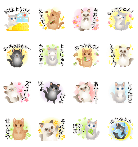 幸せ運ぶクローバーふわふわ猫関西弁大阪府 -LINEスタンプマニア