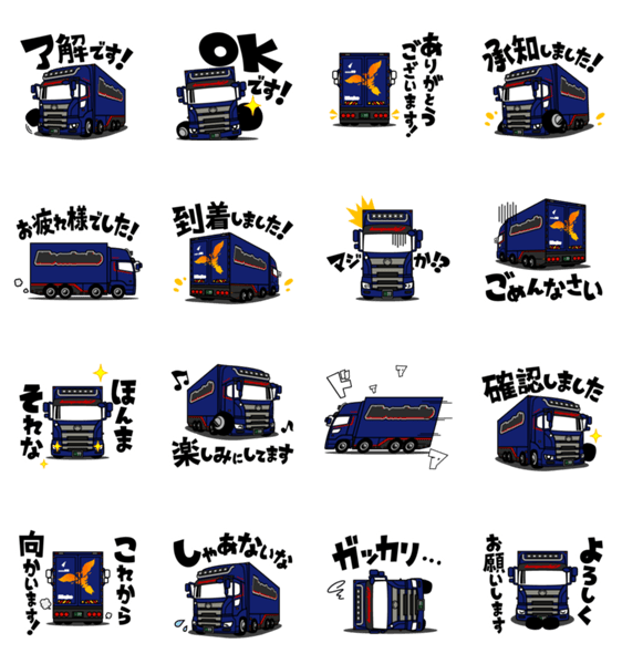 クールな紫色の大きなトラックのスタンプです!友達同士で、チームのグループLINEで、愛車をアピールしちゃおう!