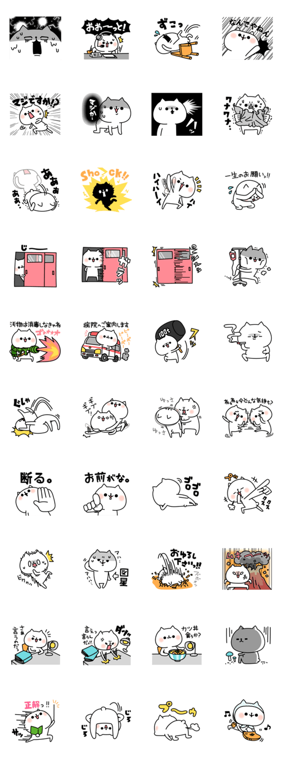 白ネコのあいうえお・・・ってるスタンプ