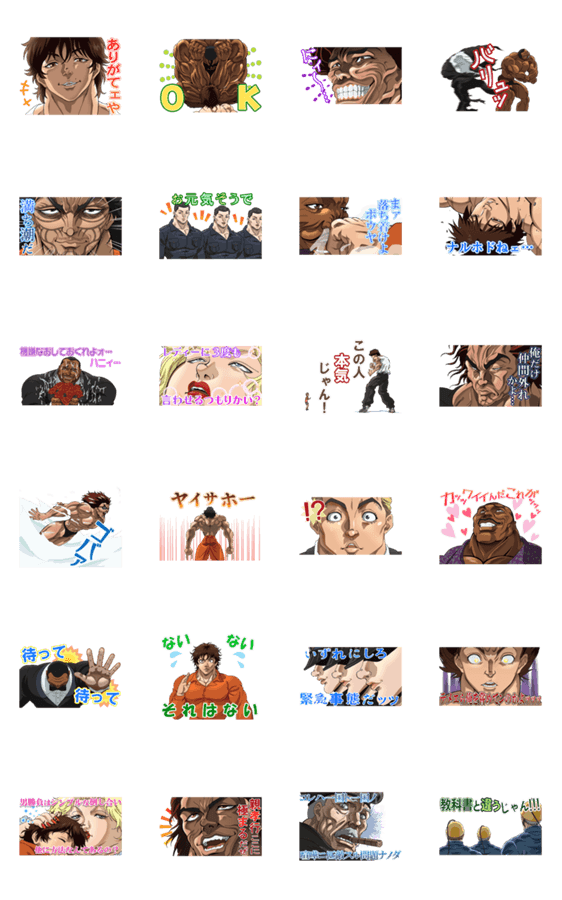 TVアニメ『範馬刃牙』の動くスタンプが登場ッ! 名シーンや名セリフが盛りだくさんな地上最強のスタンプでトークを盛り上げろッッ!!