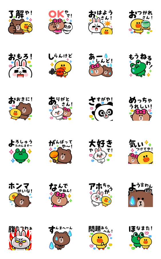 超かわいいブラウン&フレンズの動く関西弁スタンプやで!毎日使える便利な大阪弁の挨拶と返事がそろってまっせー! ※BROWN & FRIENDS をみんなでつくろう!キャンペーン参加スタンプです