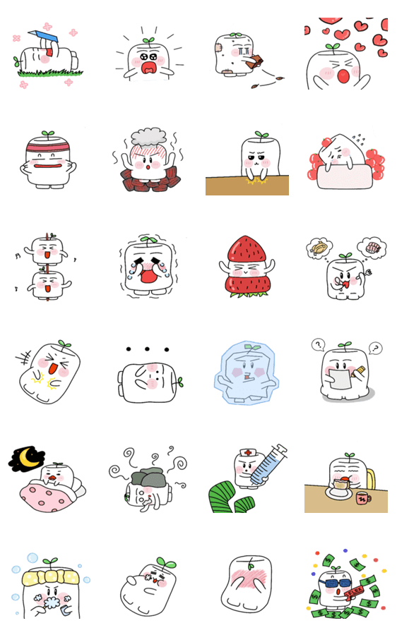 スタンプ説明 可愛くて太ったマシュマロのわがまま一日の日課