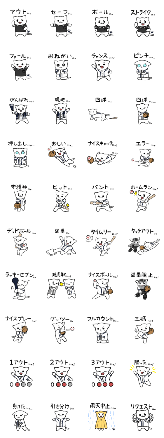 野球猫スタンプ(紺色チーム) -LINEスタンプマニア