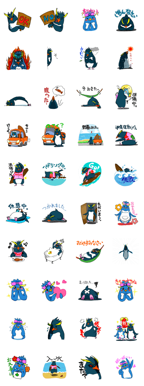 スタンプ説明 サーフィン好きなペンギンさんのスタンプです。
