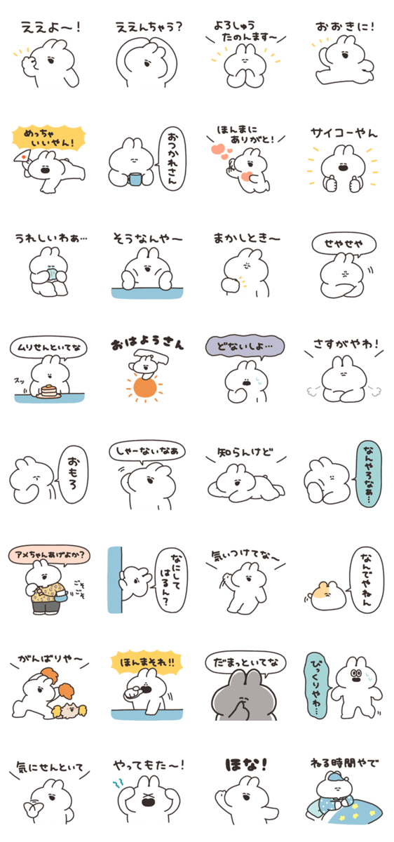 関西弁を話すうさぎのスタンプです。