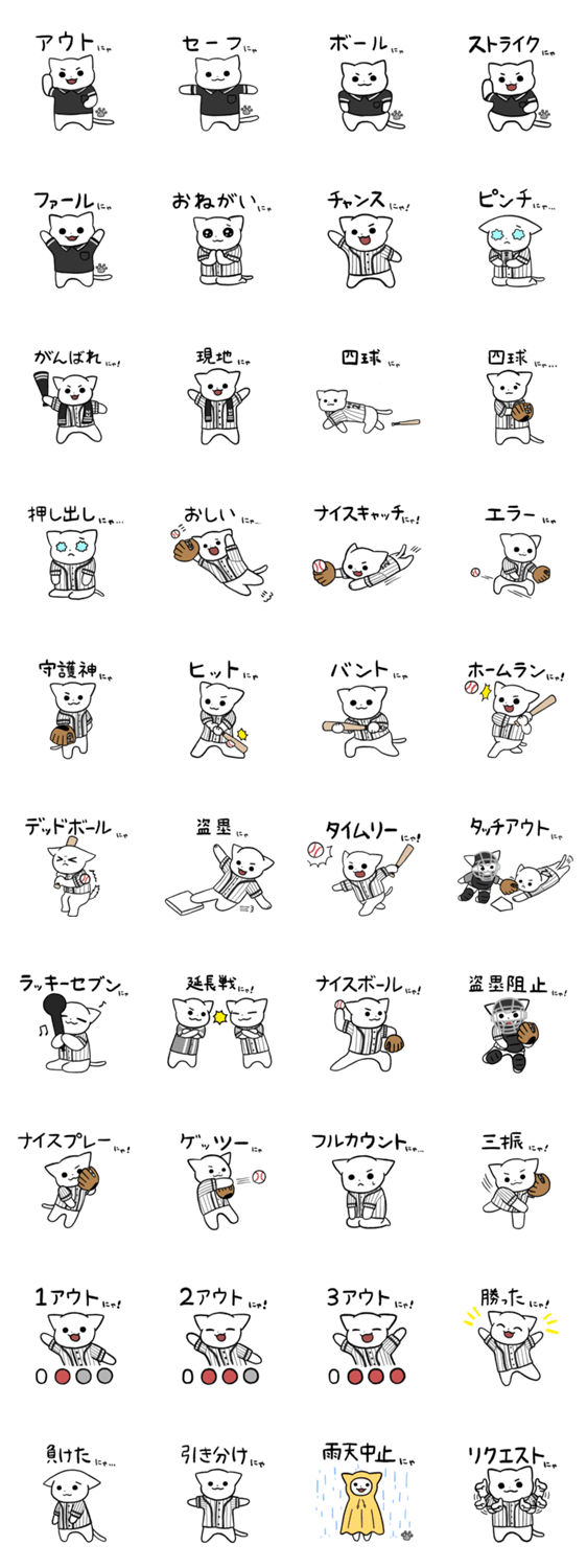 野球猫スタンプ(縦縞チーム) -LINEスタンプマニア