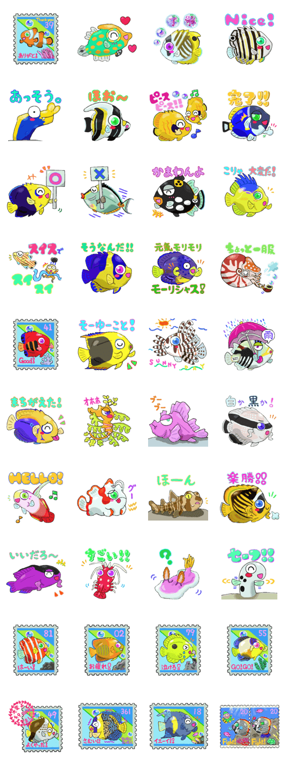 ぷにゅぷにゅウミナカと切手コレクション -LINEスタンプマニア