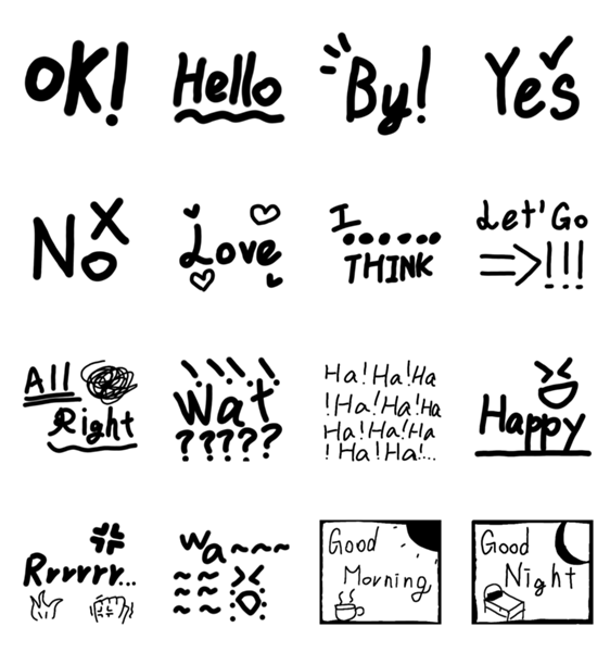 This is a hand-painted all-black English sticker~ So also wake up! Friends whose chat background is black, don't buy it! Hope you like it too
