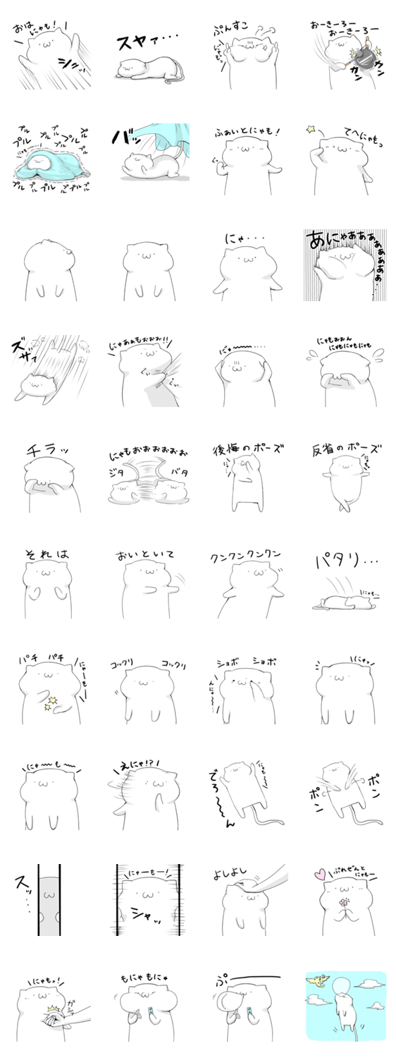 白ネコのあいうえお・・・ってるスタンプ