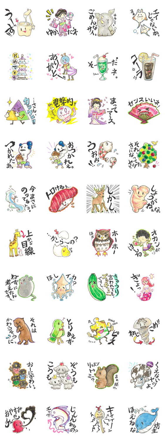 第1弾より使えるような、使えないような。ゆるさもダジャレも毒舌度も2割増?使い方はあなた次第で無限大!【矢野こもねぇ】の描くゆるかわアナログスタンプ第2弾!