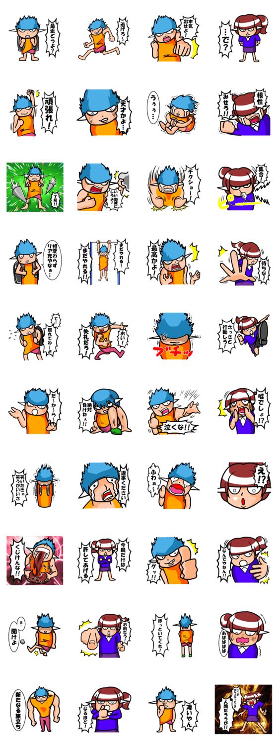 喜怒哀楽豊かな少年、少女があなたに代わって叱咤激励してくれます。友達が弱気になったときや、人生に絶望したときなどに使用できます。