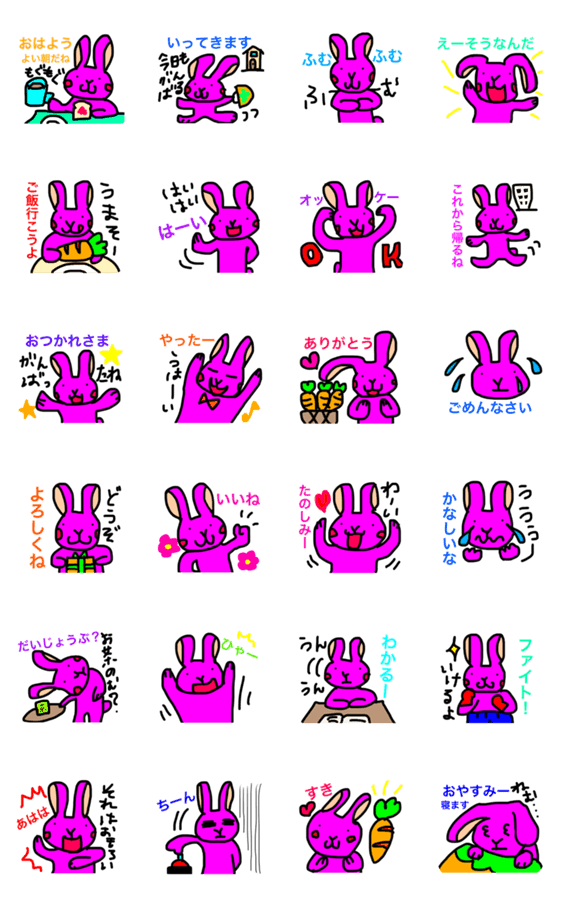 派手ぴんくウサギのスタンプ -LINEスタンプマニア