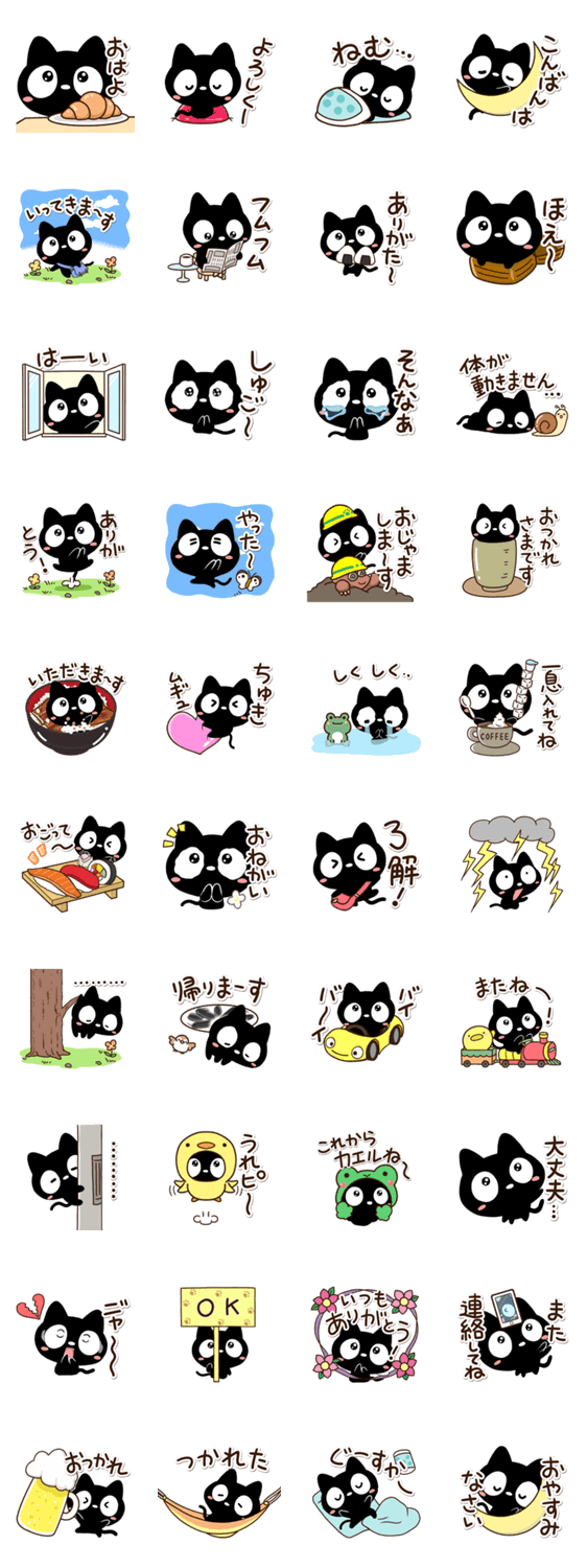 『クロネコすたんぷ』の毎日便利に使えるスタンプ。よく使う言葉や、あいさつ等がいっぱいのちいさい黒猫スタンプ。可愛いくろねこ好きな方にぜひ。【かたこ】