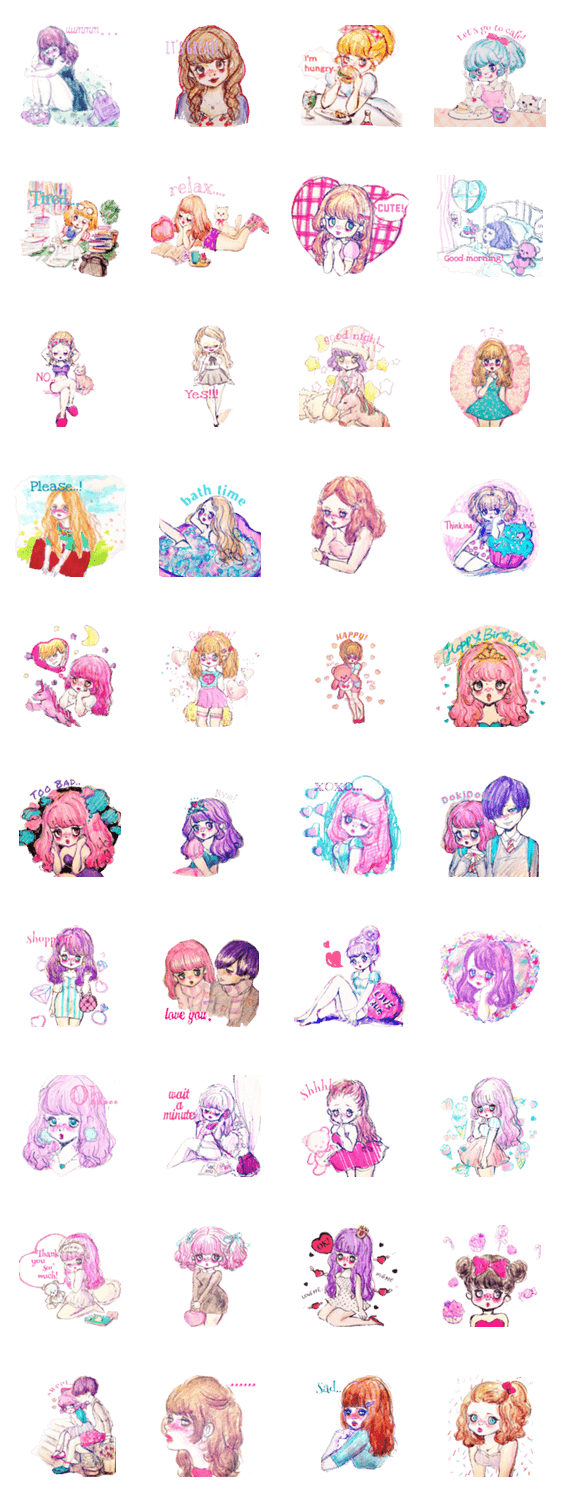 恋する女の子たち、ゆめかわいい世界の女の子たちへ。少しサブカルでキュートな彼女たちが、ガールズトークに花を咲かせます。レトロなアメリカン調。