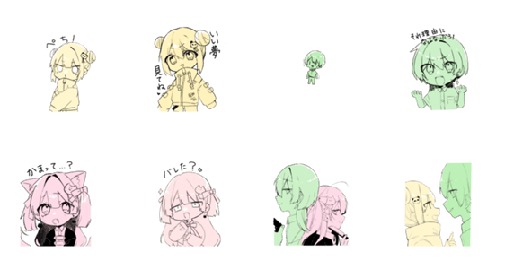 胡蝶蘭夢、猫槭、黒薔輝薇の三人の日常を描いたスタンプです。