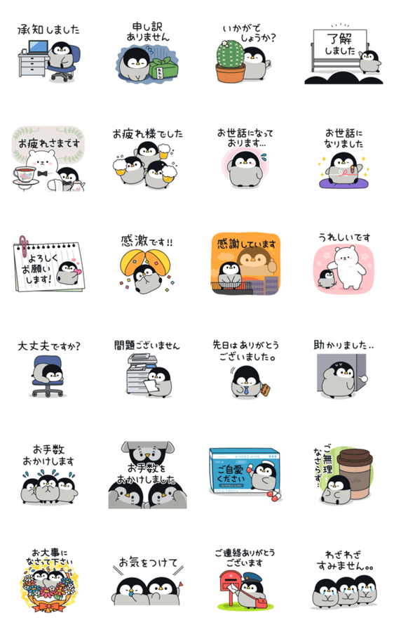 丁寧な敬語なので、家族や友人はもちろん目上の方やお仕事・ビジネス用にも使いやすい!ペンギンの赤ちゃんたちのかわいいポップアップスタンプ♪