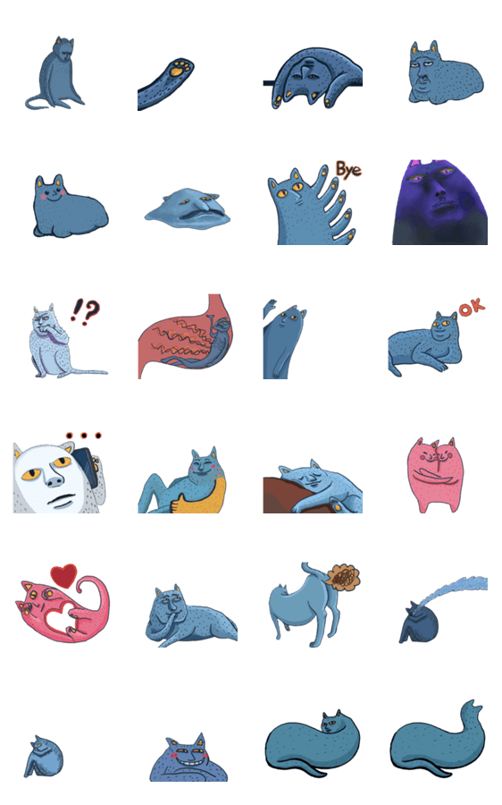 白ネコのあいうえお・・・ってるスタンプ