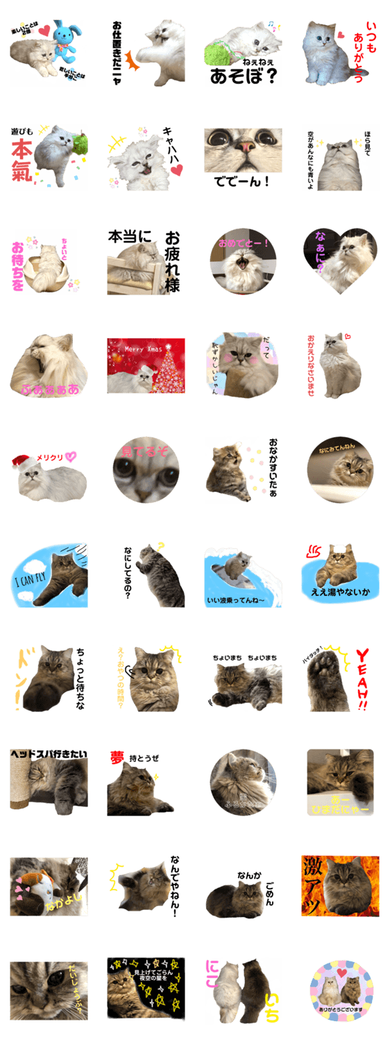 ペルシャ猫、チンチラシルバーのすめし&すふれとゴールデンのするめによるチンチラーズスタンプです❣️何気ないLINEの会話の中にほんのり幸せを添えます♡