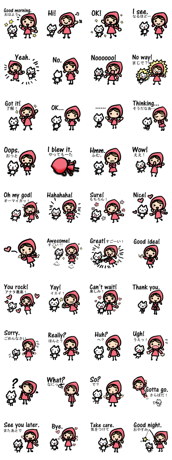 英語と日本語のバイリンガルスタンプ。外国人の友達に、英会話を勉強している人に、かわいくてかっこいい?このスタンプをどーぞ!