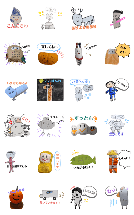 次男の絵と工作をスタンプにしました。売上(半分)は子供のお小遣いになります。