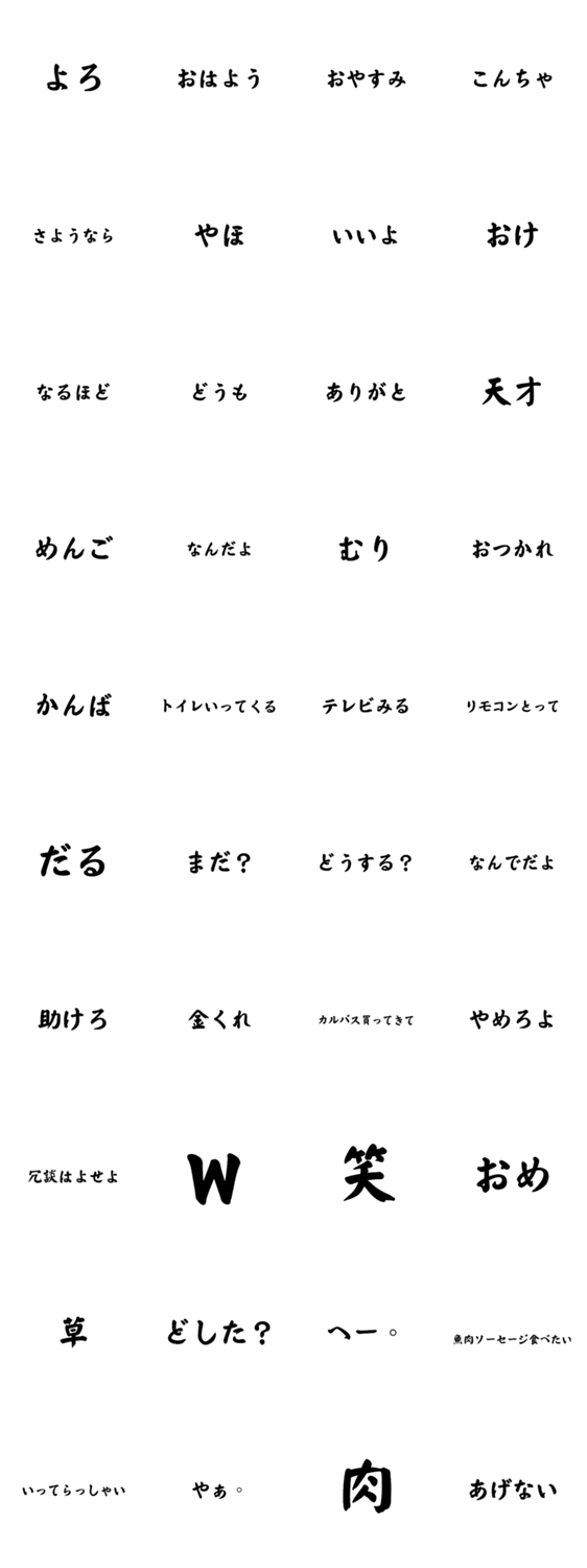 | スタンプ説明 | 文字しかないスタンプです。もはやスタンプではないです。文字です。 |