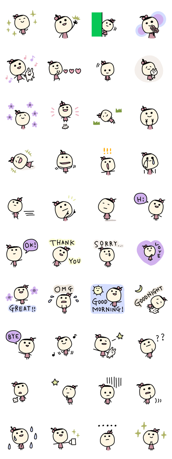 ほんわかしたシンプルなスタンプです♡ポニーテール/大人かわいい/ネイビー/パープル/シンプル/カラフル/女の子/でか文字/見やすい/ゆるい/リアクション/毎日/ほっこり