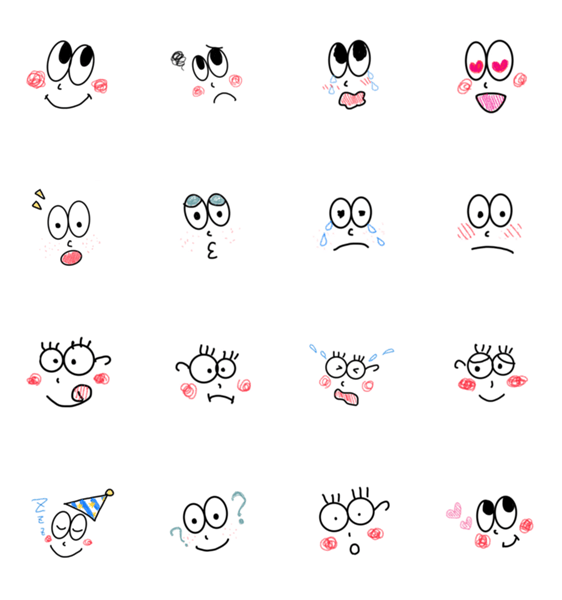 オリジナルキャラクターのおめめちゃんとそのお友達です。 リアクションなど日常会話に使えるスタンプです。