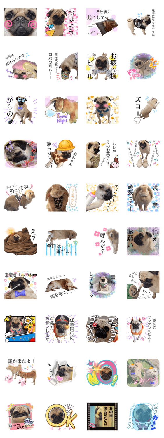 パグのしし丸とお友達 4 -LINEスタンプマニア