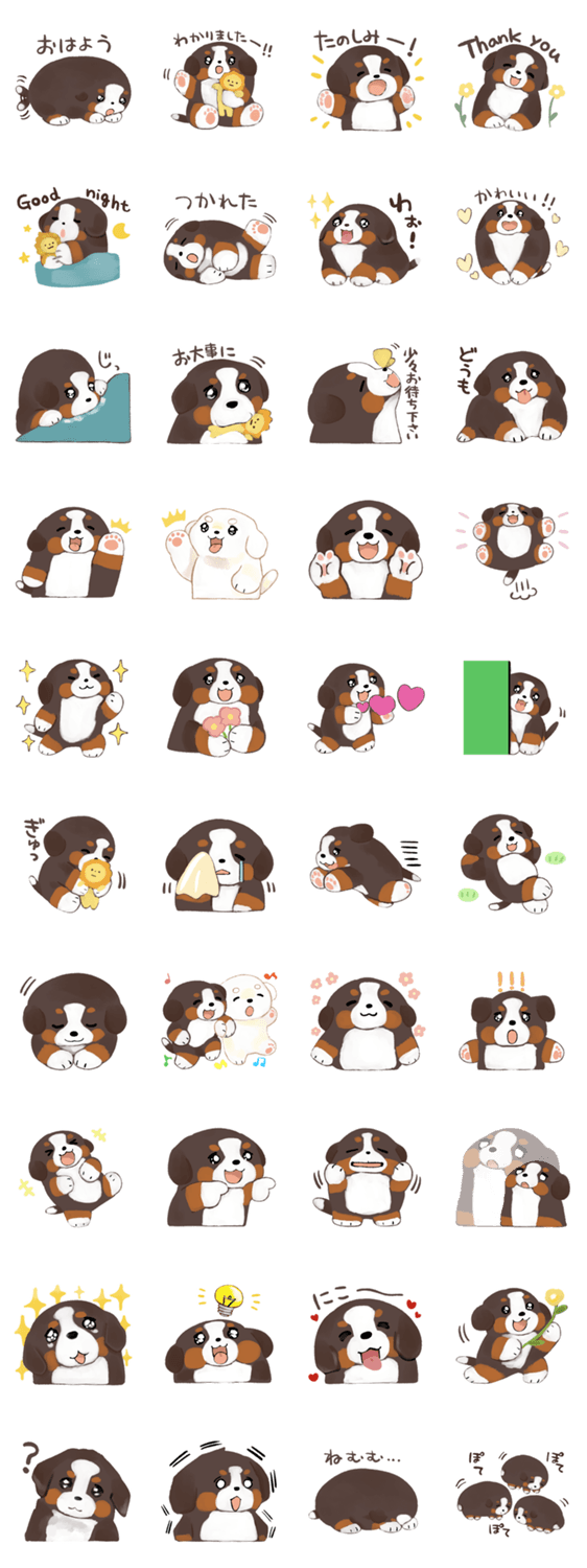 “今日もバーニーズ!”第三弾目は毎日使いやすい!に特化した 可愛いバーニーズマウンテンドックのスタンプです。