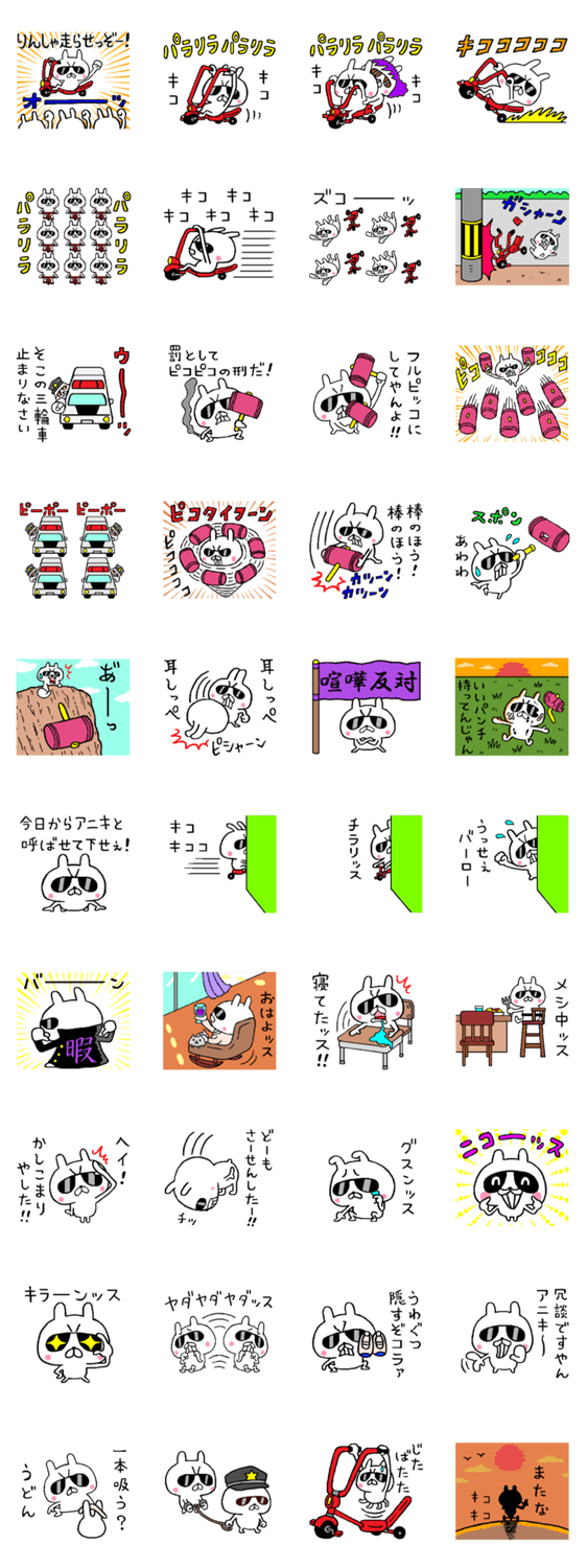 強がりだけど実は弱虫チキンな、ちょいワルうさぎちゃん。ワルぶってグラサンをかけ、ピコハン片手に赤い三輪車を乗りこなす!今回は縦に繋げて大行列で走行可能!ぜひッス