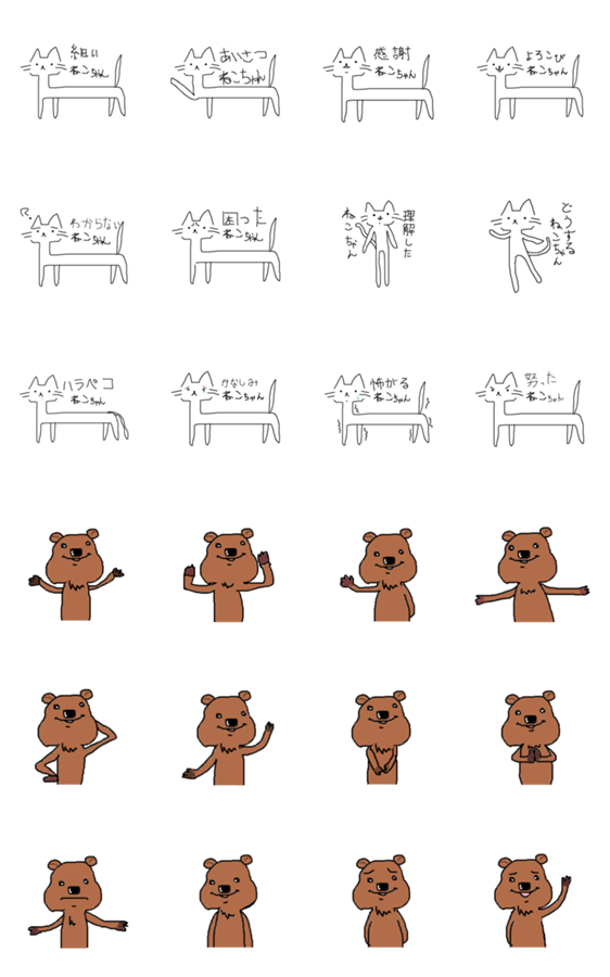 細いねこちゃんとクアッカワラビー -LINEスタンプマニア